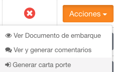 Desde el botón de acciones del embarque al cual se le desea generar la carta porte usar la opción de Generar carta porte.