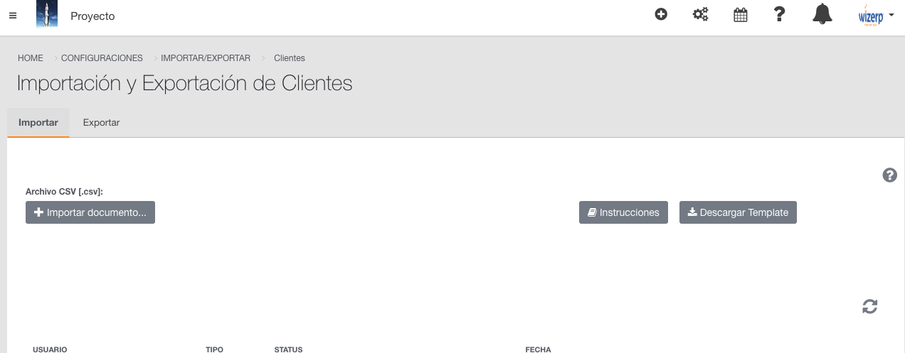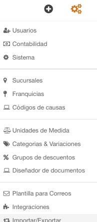 1.- Ir a Engranes / Importar y Exporta / Clientes