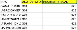 c. REGIMEN_FISCAL (La clave correspondiente al Régimen por ejemplo: 601)