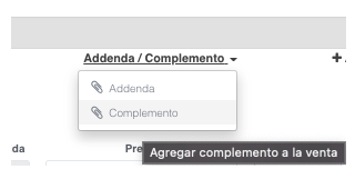 Una vez agregado un producto o servicio de Flete válido para realizar su complemento, usaremos la opción de Addenda/Complemento y seleccionaremos la opción de complemento.