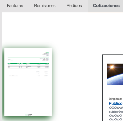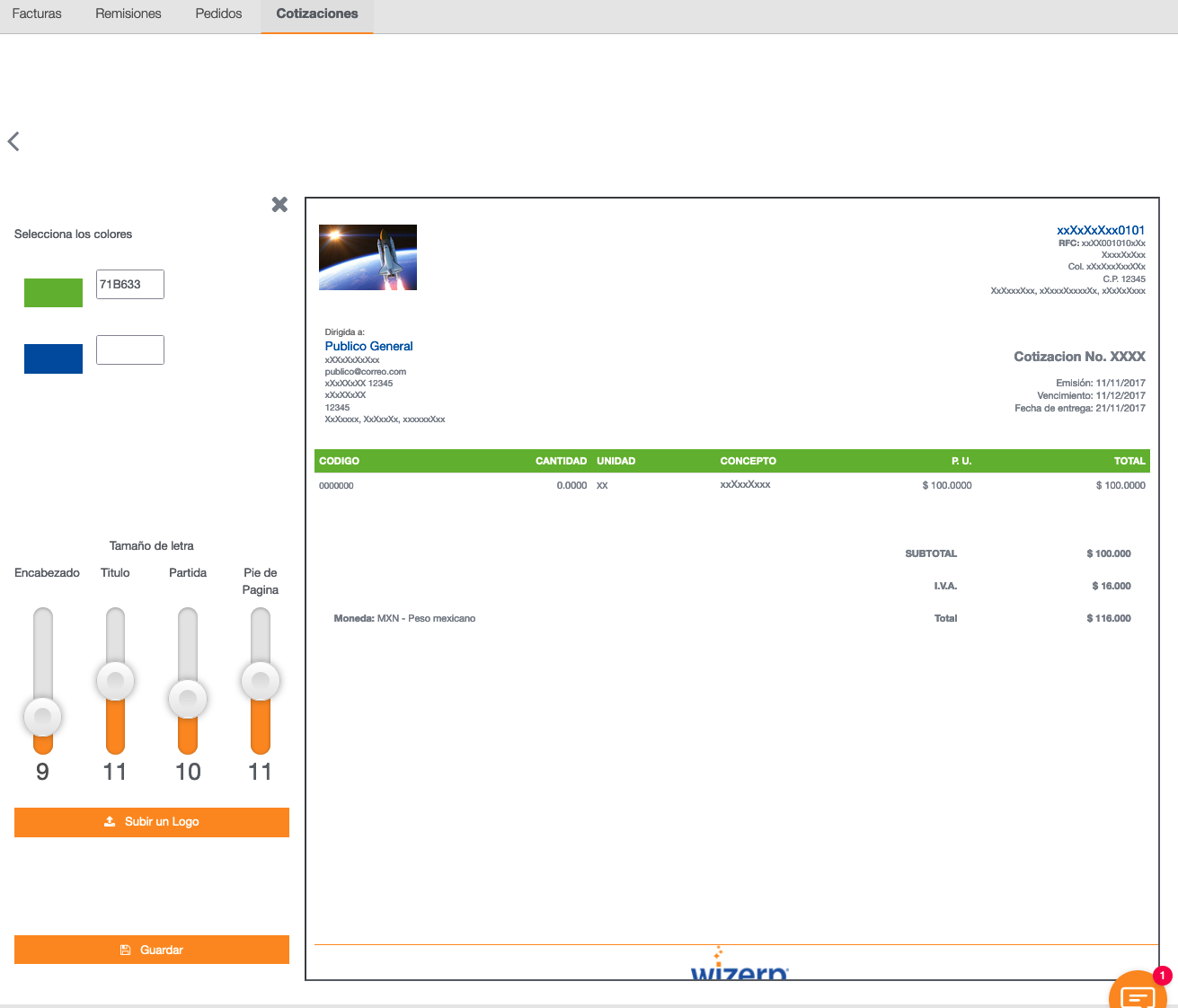 Desde la pestaña de cotizaciones podemos encontrar la plantilla a la cual podemos editar colores y tamaño de la letra.