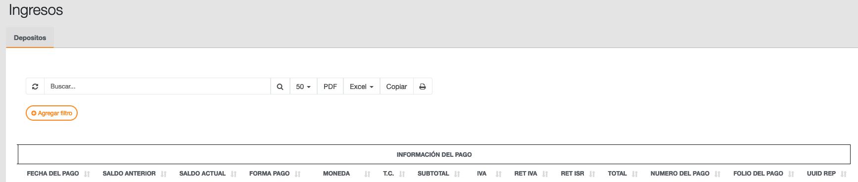 Las columnas que se encuentren bajo este título están relacionadas, con la información de los pagos relacionados a los documentos realizados.