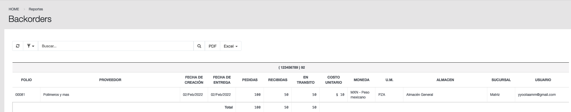 En el reporte de Backorders encontrará las siguientes columnas: