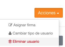 Una vez ubicado al usuario al cual se debe de eliminar ir al botón de acciones y usar la opción de eliminar.